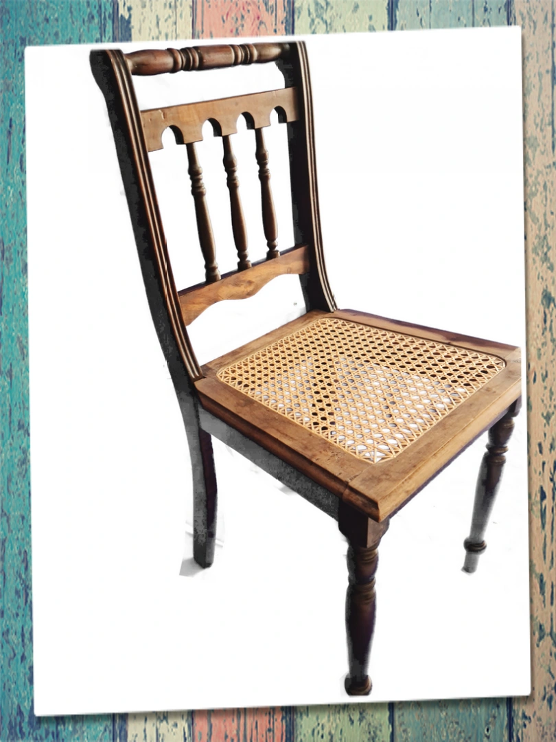 Em madeira maciça com assento trançado
