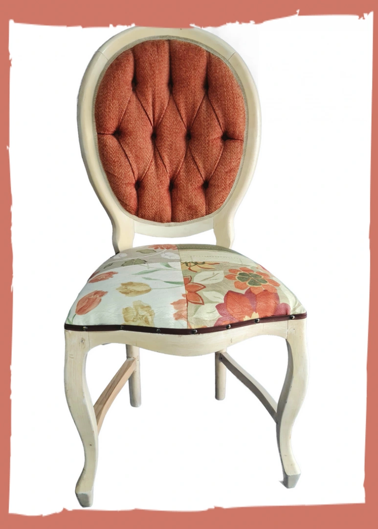 Cadeira medalhão, sem braço, assento patchwork, encosto terracota (telha)